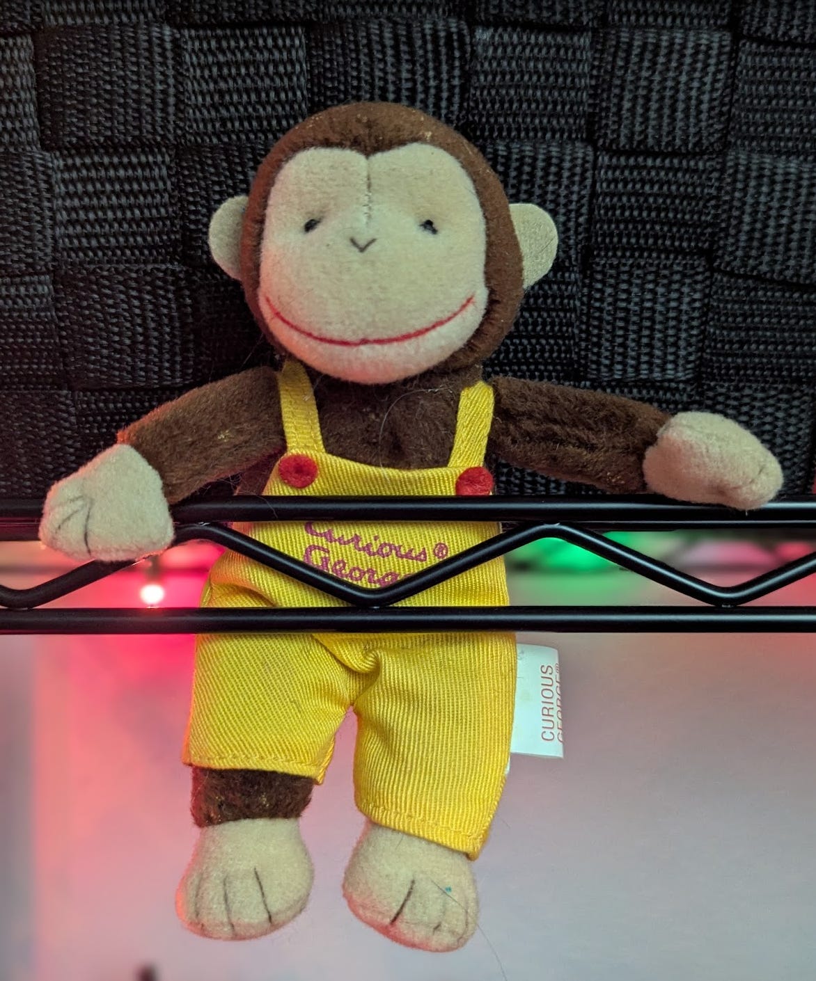 First, I installed a fence across the entrance to the kitchen to serve as a “cage” because I did not know if she was housebroken or how she would deal with being left alone all day while I was at work. I wanted an older dog just for that reason, knowing it would be cruel to crate a young, high-energy dog for 10 to 12 hours a day five days a week. (I worked a regular schedule, but commuting ate up the rest.) Curious George had taught me that much, at least.