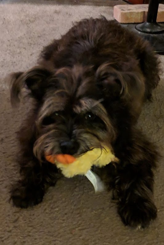 By 2016, I had been in therapy for a couple of years and had a decent desk-jockey job at FSU, but I was still putting off the idea of owning a dog for a variety of reasons which, I think, mostly had to do with self-flagellation. (Guilt is a hell of a drug.)