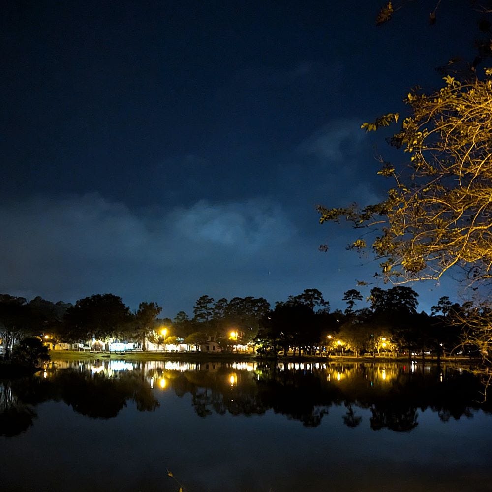 I thought I’d share a non-Keely photo this week, a shot of little Lake Ella before dawn. It is normally all stirred up due to the ducks and the Canada Geese but I guess we were there before the waterfowl woke up, so the water was mirror-finish calm. Enjoy.