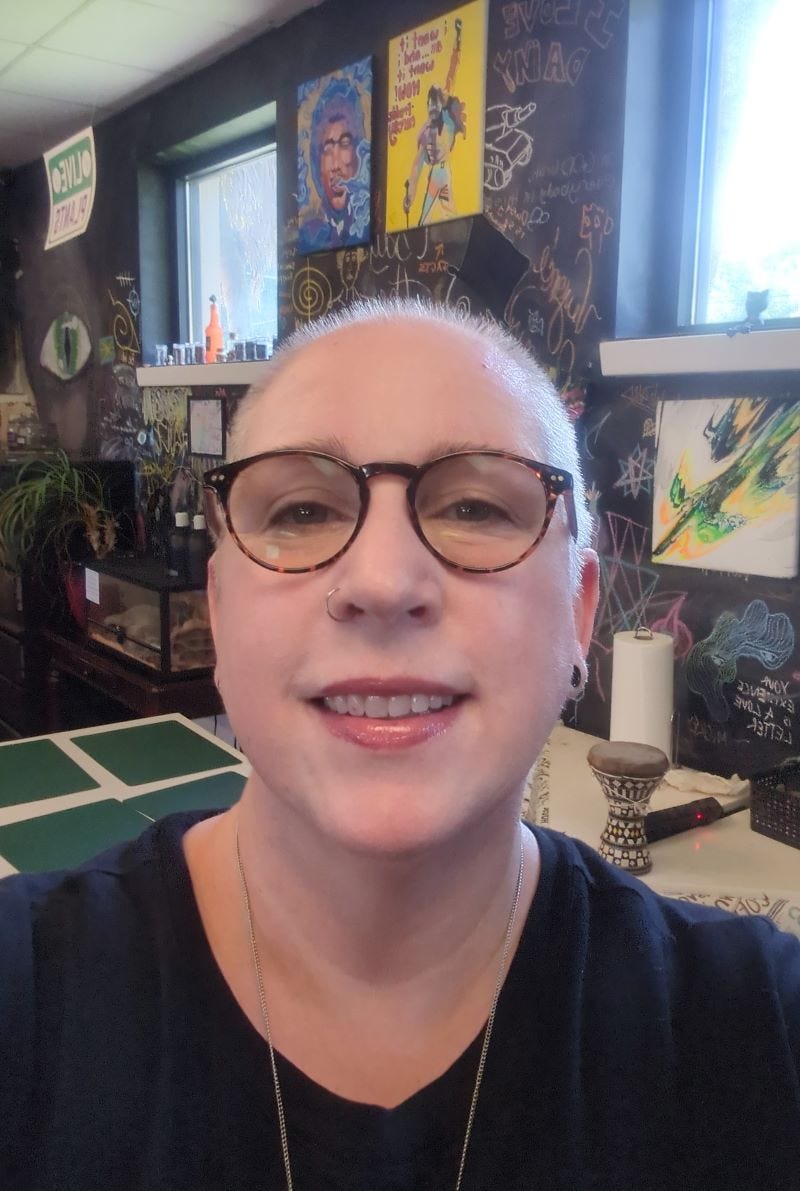 And here is me, 2024, almost 55 years old, hanging out at Honest Living coffee/tea shop in Tallahassee: