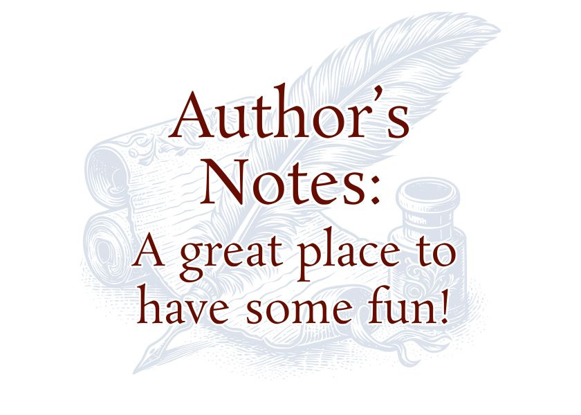 But aside from all those practical reasons, author’s notes are great place to have some fun! I often include humorous asides about what characters are thinking in a given scene, which are little bon mots that would be completely out of place within the story itself. Not quite post-credits extras, not quite blooper reels, these tiny extra story bites invite the reader in on the joke with me.